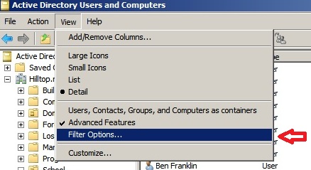 For example, in the image below "Filter Options..." is selected on the "View" menu of ADUC. An attempt will be made to find a user whose sAMAccountName starts with a leading space.